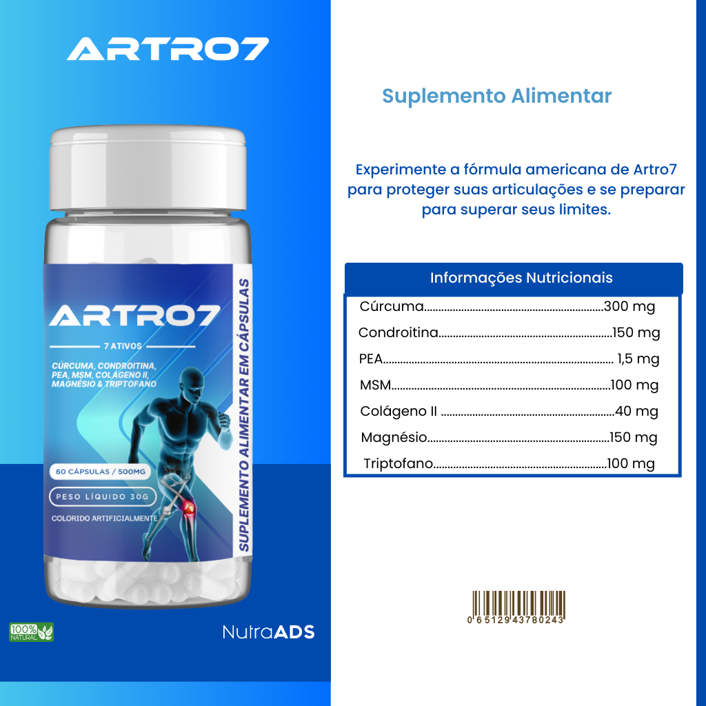 ARTRO7 está aprovado por mim, é a mais avançada do Brasil para regeneração articular. Uma combinação precisa de colágeno tipo II, condroitina e cúrcuma com eficácia clínica comprovada.