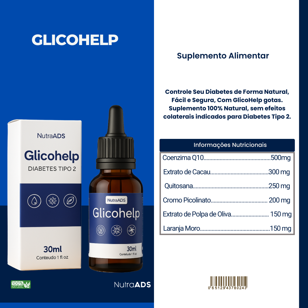 Controle Seu Diabetes de Forma Natural, Fácil e Segura, Com GlicoHelp gotas.